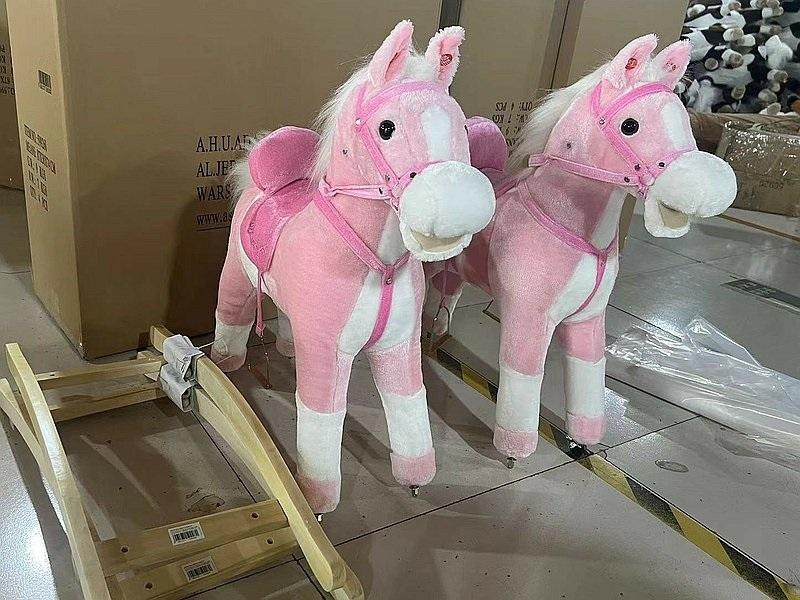 koń na biegunach z dźwiękiem, długość 60cm, wysokość 46cm w kłębie, całość 66cm