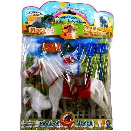Zestaw - koń z siodłem duży oraz mały kucyk. W zestawie akcesoria. Zabawka dla dzieci od lat 3.