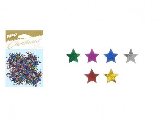 Konfetti w kształcie gwiazdek. Doskonałe do wszelkich prac kreatywnych. Dostarczane w woreczku z zawieszką. Wymiar: 100mm x 125mm x 5mm (szer. x wys. x gł.)