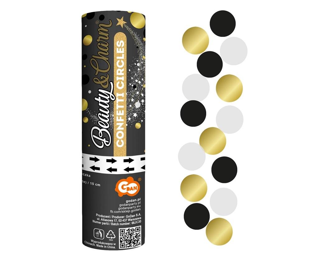 Opakowanie Konfetti pneumatyczne kółka czarne, złote.. 15cm