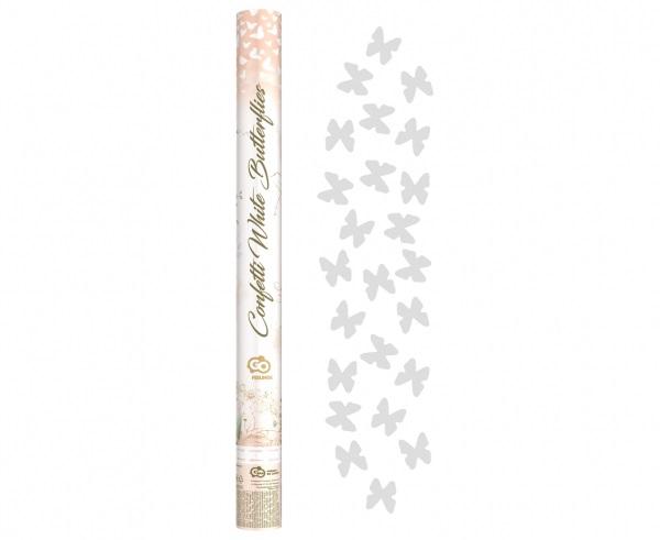 "Konfetti ""Białe Motylki"" Konfetti pneumatyczne do samodzielnego wystrzelenia Super atrakcja z okazji ślubu, wesela Materiał: papier Długość tuby: 60 cm"