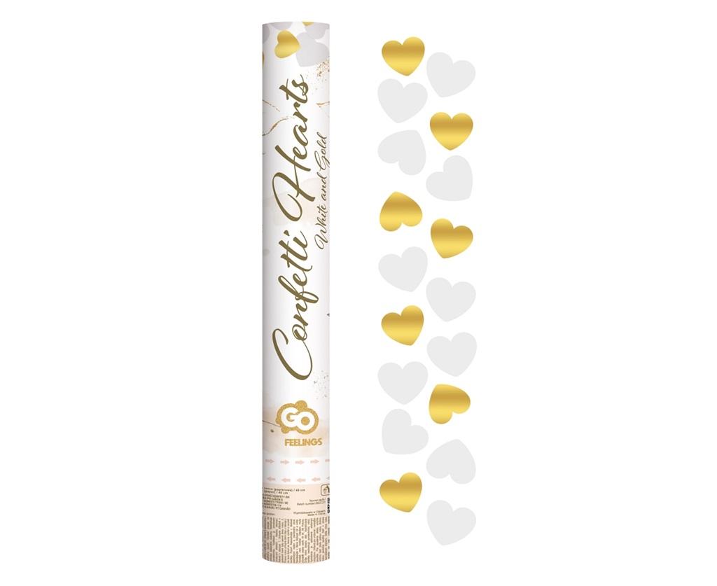 Konfetti pneumatyczne Złote i białe serduszka (foliowe i papierowe), 40 cm
