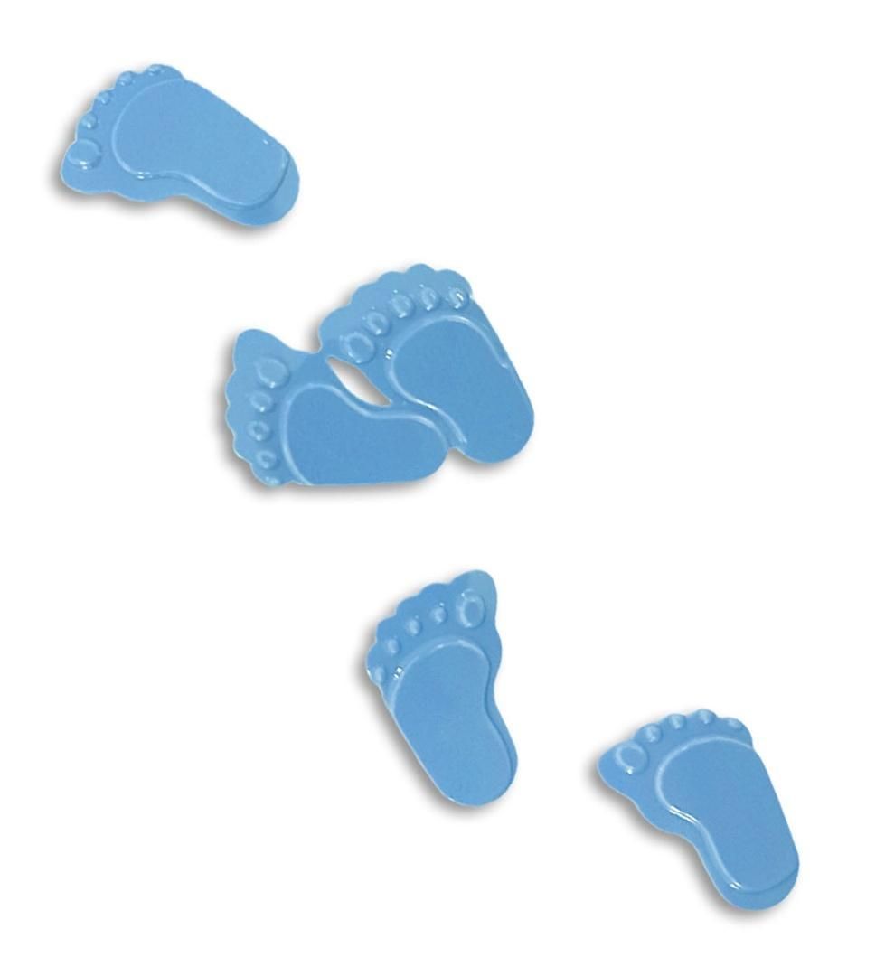 Konfetti pvc 15g.Idealny dodatek na baby shower<.Dostępny wzór: niebieskie stópki