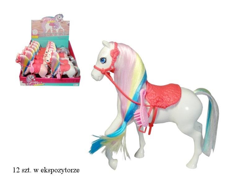 Figurka konika wraz ze szczotką do uczesania pięknej grzywy i ogona. W zestawie także grabie, wiadro i łopata. Konik przeznaczony dla dzieci od 3 lat. Podane wymiary stanowią wymiar opakowania. Produkt występuje w kilku wersjach kolorystycznych, wybierany losowo. Cena dotyczy jednej sztuki. Produkt zapakowany w kartonową podstawkę z przezroczystym kloszem.