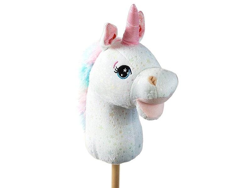konik na kiju - hobby horse - jednorożec, z dźwiękiem, łeb 33x23 cm,