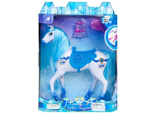 Pozwól małej dziewczynce przenieść się w świat zaczarowanych kucyków. Ten magiczny konik świeci i śpiewa! Po naciśnięciu serduszka konik śpiewa a siodło mieni się różnymi kolorami. Koń posiada długą, piękną grzywę do czesania. Zestaw zawiera: konia śpiewającego i świecącego, szczotkę, 4 spinki do włosów. Zabawka wymaga zasilania bateriami 3xLR44, przeznaczona dla dzieci od lat 3. Wymiary opakowania (dł.x wys.x gł.) [cm] 29x39x9