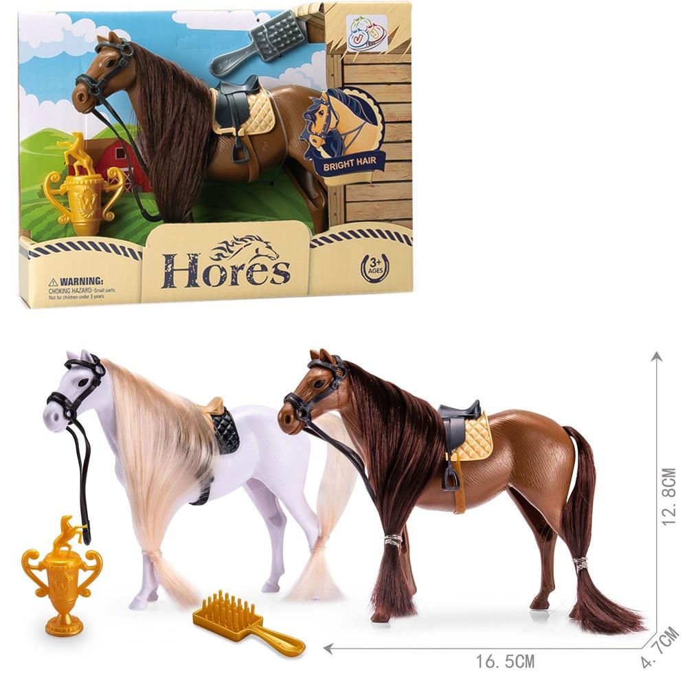 Konik z długą grzywą, ze szczotką do czesania jej. W zestawie również puchar zwycięski. Koń występuje w dwóch kolorach - białym i brązowym Wysokość konia - 13 cm Wymiary opakowania: 19.5 x 5 x 14.5 cm