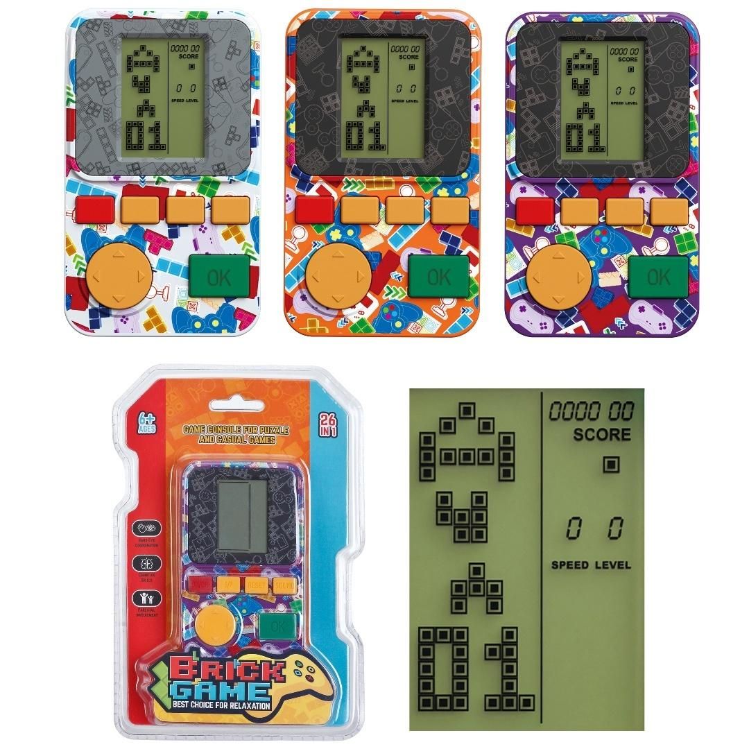 Klasyczna Konsola "Brick Game" 26w1 - Nostalgia i Fantastyczna Zabawa w Jednym! Przywróć wspomnienia z dzieciństwa lub wprowadź swoje dziecko w świat klasycznych gier z naszą konsolą "Brick Game"! Ta kompaktowa i wciągająca zabawka oferuje 26 wariantów popularnych gier logicznych, zapewniając godziny świetnej rozrywki w podróży, w domu czy gdziekolwiek zechcesz. Cechy produktu: 26 Gier w Jednym: Ciesz się różnorodnością wariantów klasycznej gry w spadające klocki oraz innymi prostymi, ale wciągającymi grami logicznymi, które rozwijają spostrzegawczość i refleks. Łatwa w Obsłudze: Intuicyjne przyciski sterujące i przejrzysty ekran LCD sprawiają, że konsola jest prosta w obsłudze zarówno dla dzieci, jak i dorosłych. Kompaktowa i Przenośna: Niewielkie rozmiary sprawiają, że konsola z łatwością zmieści się w plecaku czy kieszeni, idealna do zabawy w podróży, podczas czekania czy w przerwie od nauki. Wiele Wersji Kolorystycznych: Dostępna w różnych, atrakcyjnych wzorach obudowy, co pozwala wybrać ulubioną opcję (kolory wysyłane losowo, chyba że podano inaczej). Rozwija Umiejętności: Gra stymuluje myślenie strategiczne, koordynację wzrokowo-ruchową oraz zdolność szybkiego podejmowania decyzji. Dla Każdego: Idealna zarówno dla dzieci, jako wprowadzenie do świata gier logicznych, jak i dla dorosłych, którzy z sentymentem wspominają klasyczne konsole. "Best Choice for Relaxation": Jak sugeruje napis na opakowaniu, to świetny sposób na relaks i odstresowanie. Wielkość opakowania: 14x21x3 cm Zawartość opakowania: 1x Konsola do gier "Brick Game" Zapewnij sobie lub swojemu dziecku mnóstwo zabawy i wróć do korzeni gier wideo z naszą klasyczną konsolą "Brick Game"!