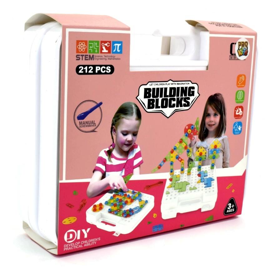 Klocki konstrukcyjne w różowej walizce to masa zabawy, podczas której dziecko rozwija wyobraźnię przestrzenną. Kreatywnej zabawy dostarcza aż 212 elementów do skręcania. Zabawę ułatwiają bezpieczne narzędzia do skręcania. Konstrukcje można budować na walizce poziomo lub pionowo.