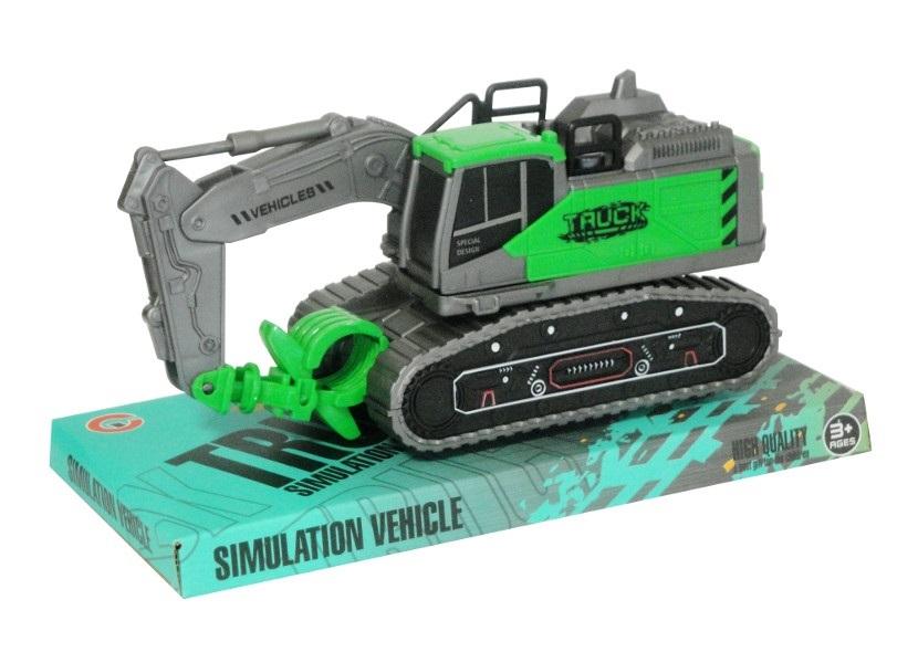 Maszyna budowlana koparka do zabawy w plac budowy. Dzieci za jej pomocą będą mogły wykopać wielką dziurę. Zabawka zapakowana jest w kartonową podstawkę z przezroczystym kloszem. Produkt dla dzieci od 3 roku życia. Podane wymiary stanowią wymiar opakowania.