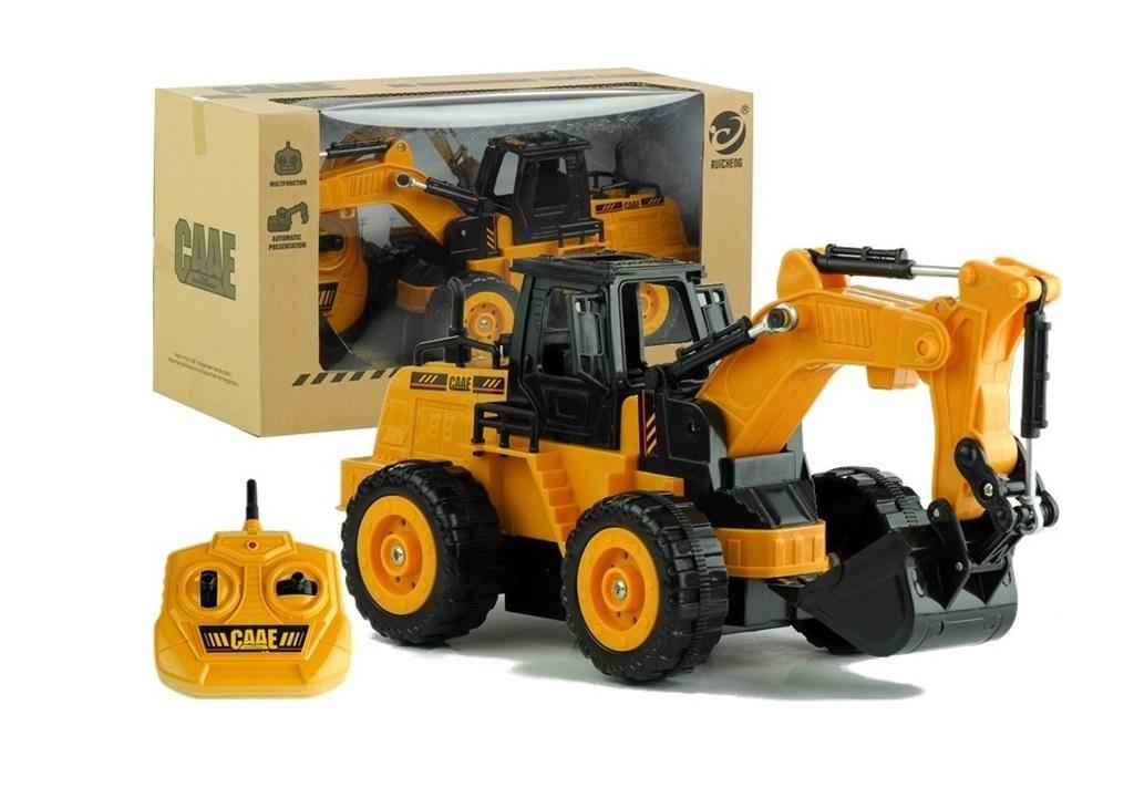 Żółta, zdalnie sterowana koparka dla dzieci obsługiwana jest dołączonym do zestawu pilotem 2.4G. Funkcje, jakie posiada, zadowolą każdego operatora: koparka może w przód/tył, prawo/lewo, a także podnosić swe ramię do nabierania materiałów na przykład piasku lub żwirku. Obsługa pilota R/C jest bardzo prosta posiada on dwa joysticki, odpowiadające kierunkom oraz dwa guziki, umożliwiające poruszanie łyżką i demonstrację wszystkich funkcji zabawki.