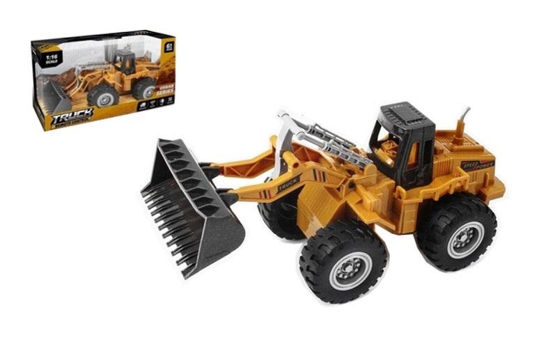 Plastikowa koparka budowlana sterowana pilotem. Pojazd porusza się do przodu, do tyłu, skręca w prawo i w lewo. Pojazd świeci także kolorowym światełkiem. Produkt działa na baterie typu AA. Baterie nie są załączone do zabawki. Zabawka przeznaczona dla dzieci od 6 lat. Produkt zapakowany w kartonowe opakowanie z przezroczystym okienkiem. Podane wymiary są wymiarami opakowania.