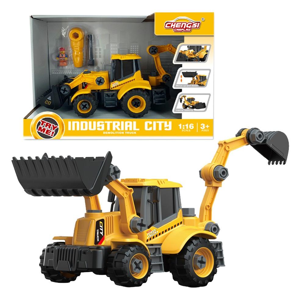 Koparko-ładowarka do skręcania. W zestawie śrubokręt i dwie różne końcówki. Wymiary koparko-ładowarki: 20.5 x 13.2 x 11.4 cm