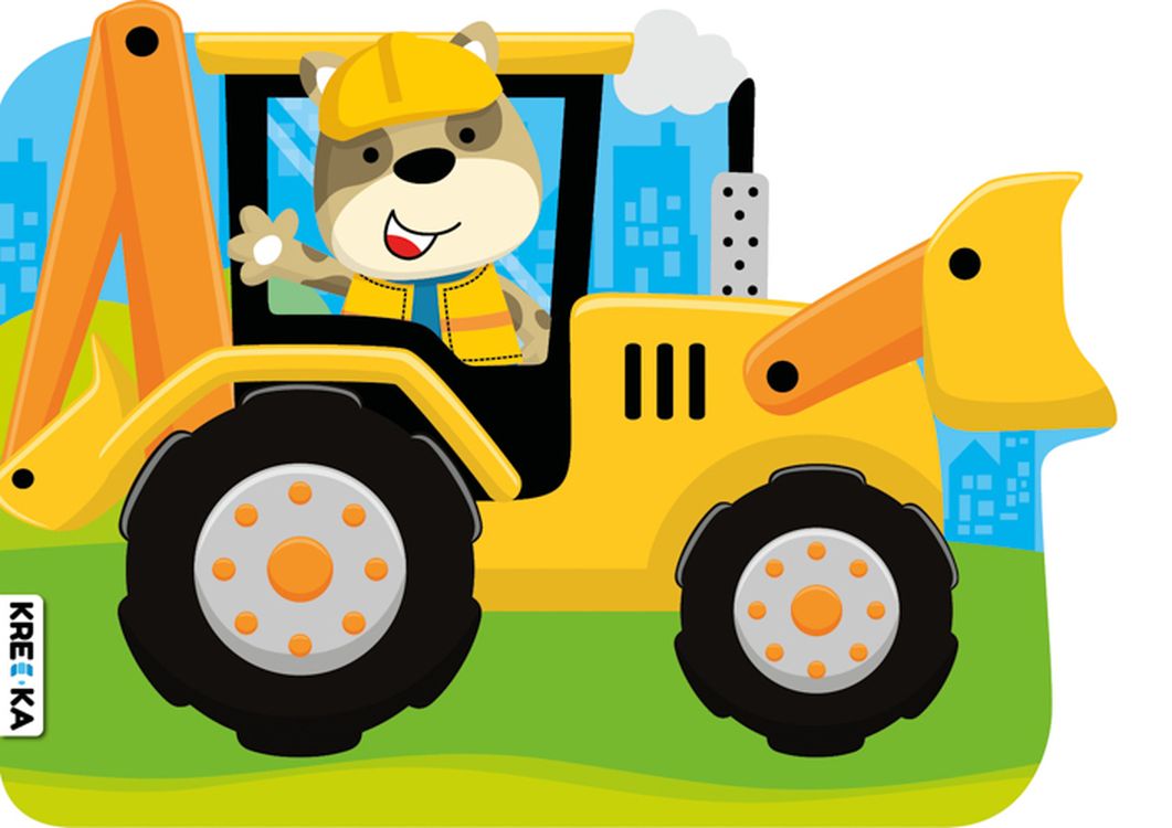 Zaparkuj pojazd na biureczku malucha! Kolorowanka z naklejkami w kształcie koparko-ładowarki, z pieskiem w roli kierowcy, to prawdziwa gratka dla małych miłośników motoryzacji.