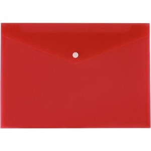 Koperta PP na zatrzask, mieszcząca format A4. Wymiary koperty: 330x235 mm, grubość: 0,14 mm. Czerwona. Opakowanie: folia 12 sztuk.