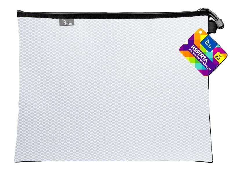 Koperta z suwakiem metalowym, mieszcząca format B4. Miękkie i elastyczne tworzywo. Wymiary koperty: 380x290 mm, grubość: 0,5 mm. Opakowanie: folia 1 sztuka