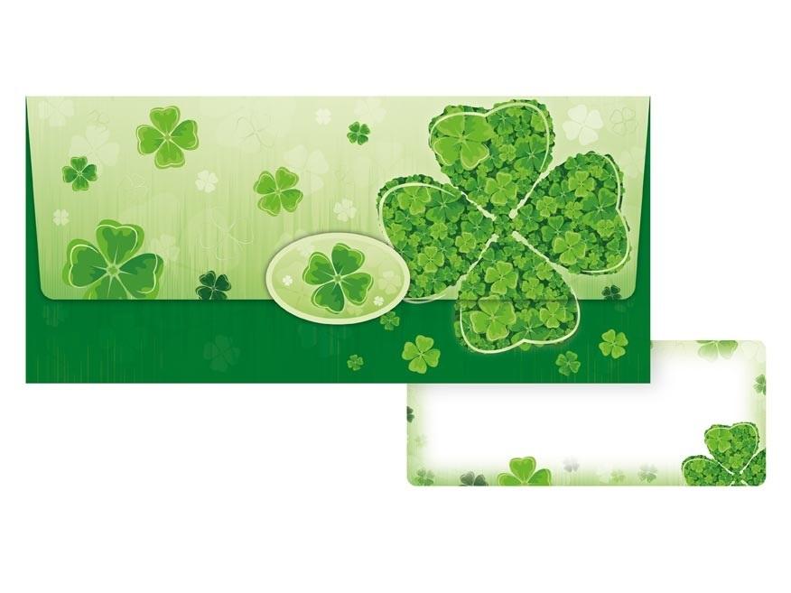 Koperta podarunkowa. Wewnątrz znajduje się ozdobna karteczka, na której można napisać życzenia. Każda koperta jest zapakowana osobno w folię z zawieszką euro.