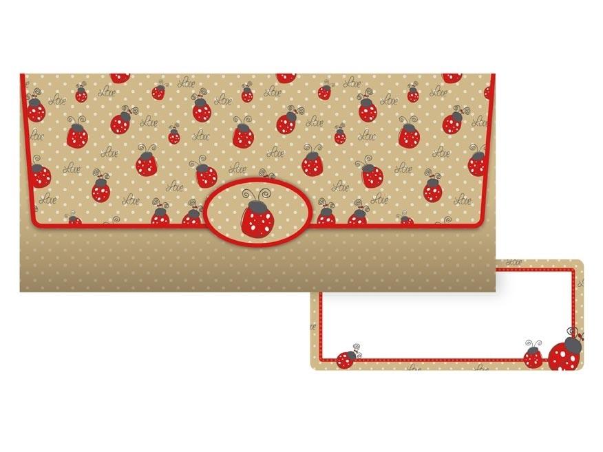 Koperta podarunkowa. Wewnątrz znajduje się ozdobna karteczka, na której można napisać życzenia. Każda koperta jest zapakowana osobno w folię z zawieszką euro.