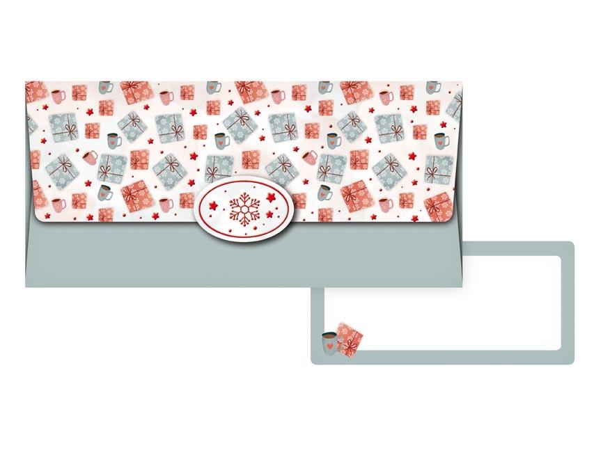 Koperta podarunkowa. Wewnątrz znajduje się ozdobna karteczka, na której można napisać życzenia. Każda koperta jest zapakowana osobno w folię z zawieszką euro. Wymiar: 180mm x 85mm x 2mm (szer. x wys. x gł.) Wyprodukowano w UE.