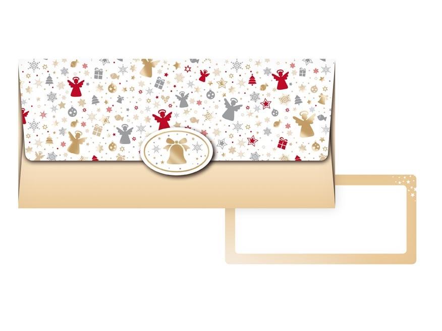 Koperta podarunkowa. Wewnątrz znajduje się ozdobna karteczka, na której można napisać życzenia. Każda koperta jest zapakowana osobno w folię z zawieszką euro. Wymiar: 180mm x 85mm x 2mm (szer. x wys. x gł.) Wyprodukowano w UE.