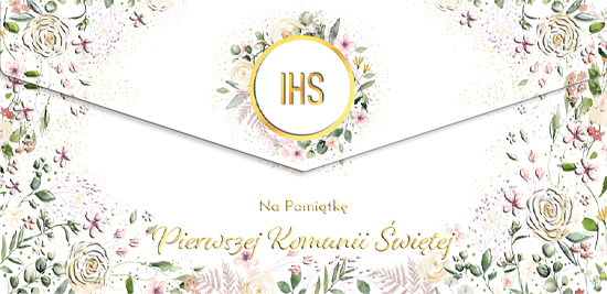 Koperta na pieniądze Komunia Opłatek w kwiatach