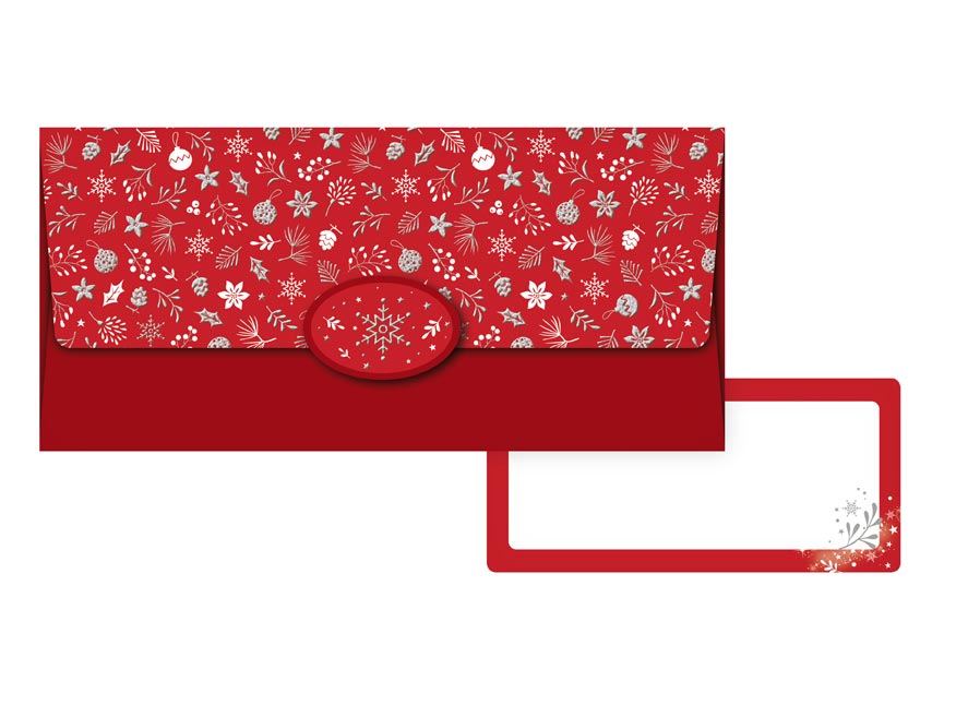 Koperta podarunkowa. Wewnątrz znajduje się ozdobna karteczka, na której można napisać życzenia.