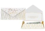 Koperta podarunkowa KOP-017 "Dla kogoś wyjątkowego" Koperta podarunkowa jest eleganckim sposobem na podarowanie bliskiej osobie banknotu lub karty podarunkowej. Koperta jest kolorowa i uszlachetniona metalizowaną folią hot-stamp, jest solidnie wykonana i wyposażona w rzep, co umożliwia jej wielokrotne otwieranie i zamykanie. Koperta zawiera życzenia w środku. Specyfikacja: wymiary: 20 x 10,5 cm (po złożeniu) wnętrze: życzenia w środku okazja: ogólne życzenia Koperty są pakowane po 3 szt.