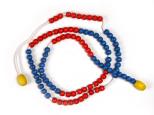 Drewniane korale w kolorze czerwonym, niebieskim i żółtym, stanowią sprawdzony i praktyczny system nauki liczenia. Można ustawiać je na sznurku w dowolnej pozycji tak, by nie przesuwały się po nim samoistnie, ponieważ nawleczone są na grubym, porowatym sznurku. Dla dzieci powyżej 3 lat