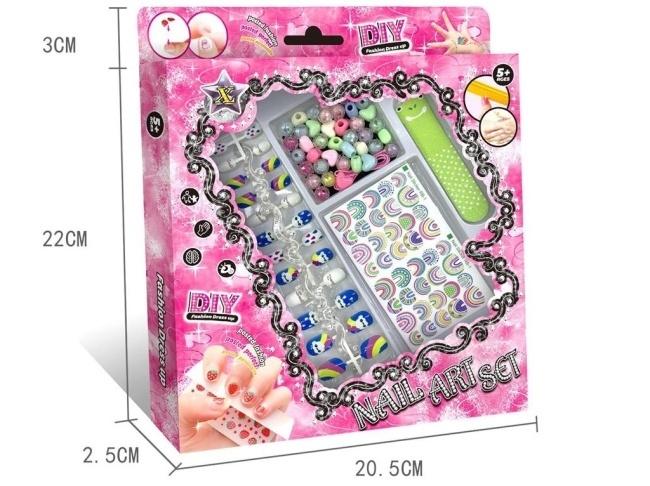 Odkryj radość tworzenia unikalnych stylizacji paznokci z naszym fantastycznym zestawem DIY Nail Art! Ten kompleksowy zestaw zawiera wszystko, czego potrzebujesz, aby zamienić swoje paznokcie w małe dzieła sztuki. Znajdziesz w nim różnorodne, gotowe do aplikacji naklejki na paznokcie z modnymi wzorami, mnóstwo kolorowych koralików do tworzenia trójwymiarowych efektów oraz praktyczny pilniczek, który pomoże nadać paznokciom idealny kształt. Zestaw jest łatwy w użyciu i bezpieczny dla dzieci powyżej 5 roku życia, rozwijając ich kreatywność i wyobraźnię. To doskonały pomysł na prezent i świetna zabawa na długie godziny!