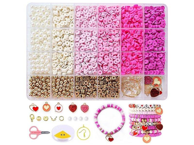 zestaw koralików do nawlekania, do tworzenia bransoletek; 19x13x1,8cm, Box