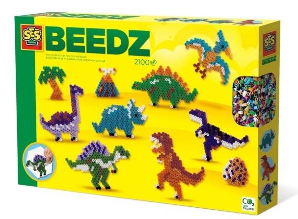 Dzięki temu zestawowi koralików do naprasowywania od Beedz możesz stworzyć te kolorowe dinozaury za pomocą 2100 koralików do naprasowywania.