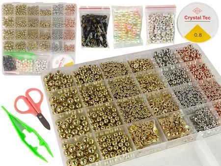 Zestaw Koralików Do Robienia Biżuterii Złoty Srebrny Samodzielne tworzenie biżuterii to ciekawy pomysł na spędzanie wolnego czasu, a przede wszystkim idealna rzecz wspomagająca rozwój Twojego dziecka. Razem z koleżankami mogą spędzić wspólne popołudnie na super zabawie. Nieograniczona możliwość projektowania własnych wzorów, różne kolory pobudzą ich kreatywność i wyobraźnie. Sam proces twórczy rozwinie motorykę, pozwoli się skupić, a przede wszystkich Twoje dziecko ćwiczy cierpliwość i wytrwałość. Jest to zajęcie czasochłonne, ale satysfakcja ze zrobionej własnoręcznej biżuterii jest nieoceniona. Zestaw zawiera wszystko co potrzeba do stworzenia biżuterii. Duży organizer zawiera, aż 24 rodzai koralików o różnych wielkościach i kształtach w kolorze złotym i srebrnym. Duża zaletą jest to, że każdy z koralików ma swoje miejsce. W trakcie zabawy można utrzymać porządek. Dodatkowe akcesoria w postaci nożyczek oraz szpuli z elastyczną gumką sprawia, że mamy wszystko, co potrzebne. Stwórz przepiękne naszyjniki, bransoletki czy pierścionki! Twórz własny styl! Elementy zestawu: - koraliki w złotym i srebrnym kolorze - szpula z gumką - nożyczki Wymiary opakowania: 22 cm x 22 cm x 3 cm Zestaw zapakowany jest w duże, ozdobne pudełko, dzięki czemu nadaje się na prezent dla każdej artystki. Ze względu na mnogość małych elementów, zabawka przeznaczona jest dla wszystkich dziewczynek powyżej 3 roku życia. Zgodna z normą EN71 i certyfikatem CE.