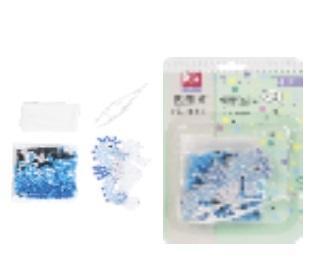 Opakowanie zawiera koraliki do zaprasowywania, z których mozna wykonać dwa motywy na dołączonej podkładce. Zestaw zawiera również pęsetę, papier do zaprasowywania oraz instrukcję.