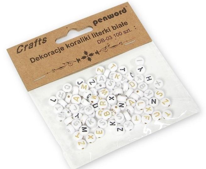 Opakowanie Koraliki literki białe 7x7mm 100szt