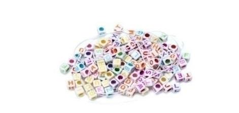 Koraliki literki + sznurek 1 m waga: 20 g kolor: białe kostki i kolorowe literki