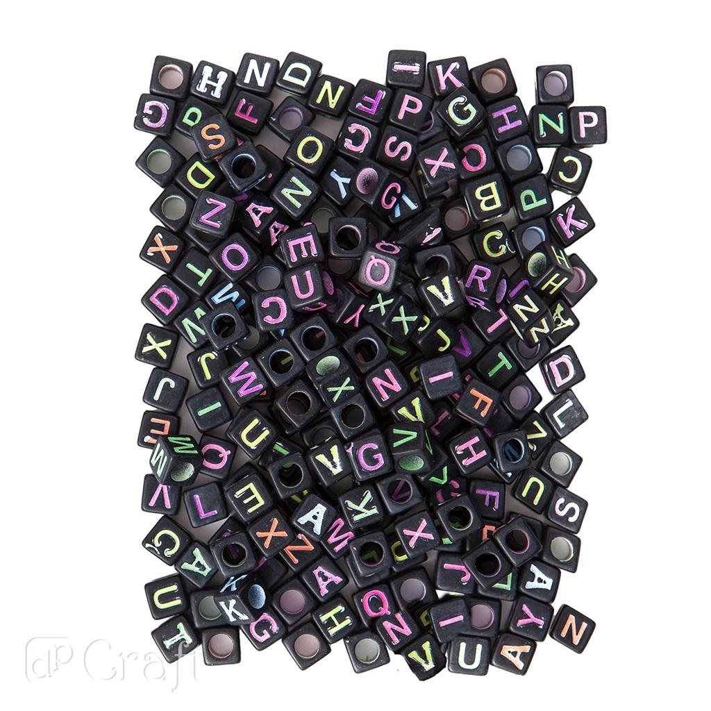 Opakowanie Koraliki literki neon na czarnej bazie 124szt