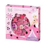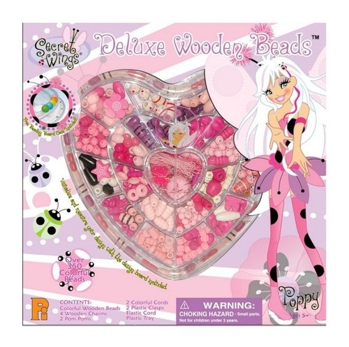 Dziewczynki naśladują swoje mamy. Chcą robić to co one i używać tych samych rzeczy. Jedną z nich jest biżuteria. Aby być spokojnym o swoje naszyjniki i bransoletki warto podarować młodej damie biżuterię dziecięcą. Deluxe Wooden Beads to olbrzymi zestaw kolorowych drewnianych koralików i ozdób wraz z akcesoriami w plastikowej szkatułce. Należy on do serii Secret Wings, która robi furorę wśród dzieci na całym świecie, z powodu postaci pięciu wróżek: Tansy, Poppy, Ivy, Honey i Lily. Z tym zestawem, którego motywem przewodnim jest czarodziejka Poppy i biedronki, Twoje dziecko stworzy dla siebie niepowtarzalne ozdoby na szyję lub na rękę. Wiele kolorów i kształtów = godziny wspaniałej zabawy. Koraliki łatwo nawlekają się na kolorowy sznureczek. Można tworzyć kompozycje według własnego upodobania, jedyne co może ograniczać dziecko to jego wyobraźnia. Cały zestaw zapakowany jest w kolorowe pudełko. Deluxe Wooden Beads doskonale nadaje się na prezent. Spraw by Twoja mała księżniczka była dumna z własnoręcznie wykonanej, oryginalnej biżuterii, którą będzie mogła pochwalić się w gronie koleżanek.