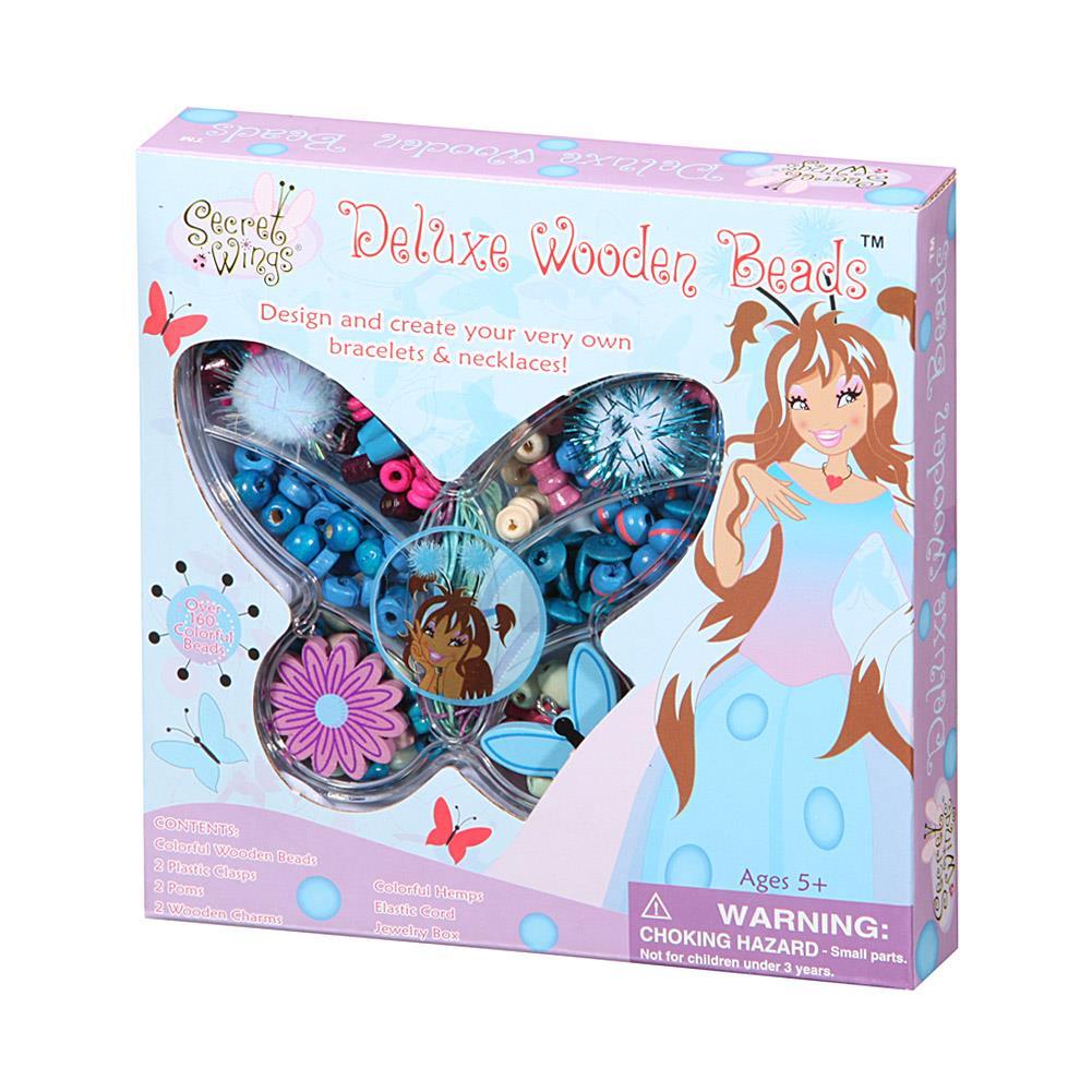 Dziewczynki naśladują swoje mamy. Chcą robić to co one i używać tych samych rzeczy. Jedną z nich jest biżuteria. Aby być spokojnym o swoje naszyjniki i bransoletki warto podarować młodej damie biżuterię dziecięcą. Deluxe Wooden Beads to zestaw wielu kolorowych drewnianych koralików i ozdób wraz z akcesoriami. Należy on do serii Secret Wings, która robi furorę wśród dzieci na całym świecie, z powodu postaci pięciu wróżek: Tansy, Poppy, Ivy, Honey i Lily. Z tym zestawem, którego motywem przewodnim jest czarodziejka Tansy i motylki, Twoje dziecko stworzy dla siebie niepowtarzalne ozdoby na szyję lub na rękę. Wiele kolorów i kształtów = godziny wspaniałej zabawy. Koraliki łatwo nawlekają się na kolorowy sznureczek. Można tworzyć kompozycje według własnego upodobania, jedyne co może ograniczać dziecko to jego wyobraźnia. Zestaw Deluxe Wooden Beads, w kolorowym pudełku, doskonale nadaje się na prezent. Spraw by Twoja mała księżniczka była dumna z własnoręcznie wykonanej, oryginalnej biżuterii, którą będzie mogła pochwalić się w gronie koleżanek. ZAWARTOŚĆ: 160 koralików drewnianych akcesoria do wyrobu biżuterii 2 pomponiki 2 drewniane zawieszki. UWAGI: Dla dzieci od 5. roku życia. Niedozwolone dla dzieci poniżej 3. roku życia - zawiera drobne elementy.