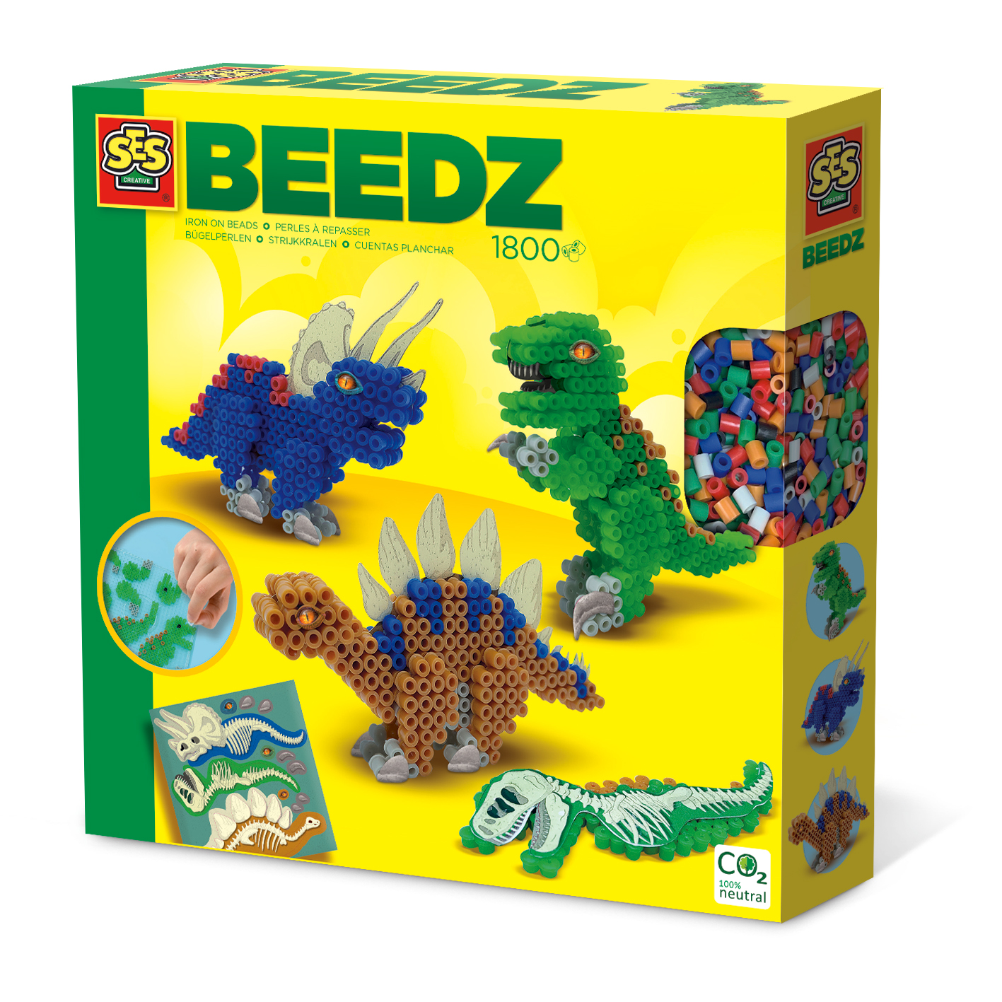 Jesteś fanem dinozaurów? W takim razie ten zestaw jest idealny dla Ciebie! Ułóż części T-Rexa, Triceratopsa i Brachiozaura na małej podkładce, a później poproś rodzica, aby je wyprasował, a następnie sklej ze sobą części we właściwym miejscu. W ten sposób możesz tworzyć własne szalone dinozaury w 3D! Koralikowy obrazek można wykorzystać lub wręczyć bliskiej osobie jako niezapomniany prezent. Zabawka przeznaczona dla dzieci powyżej 5 lat. Wyprodukowano w Holandii.