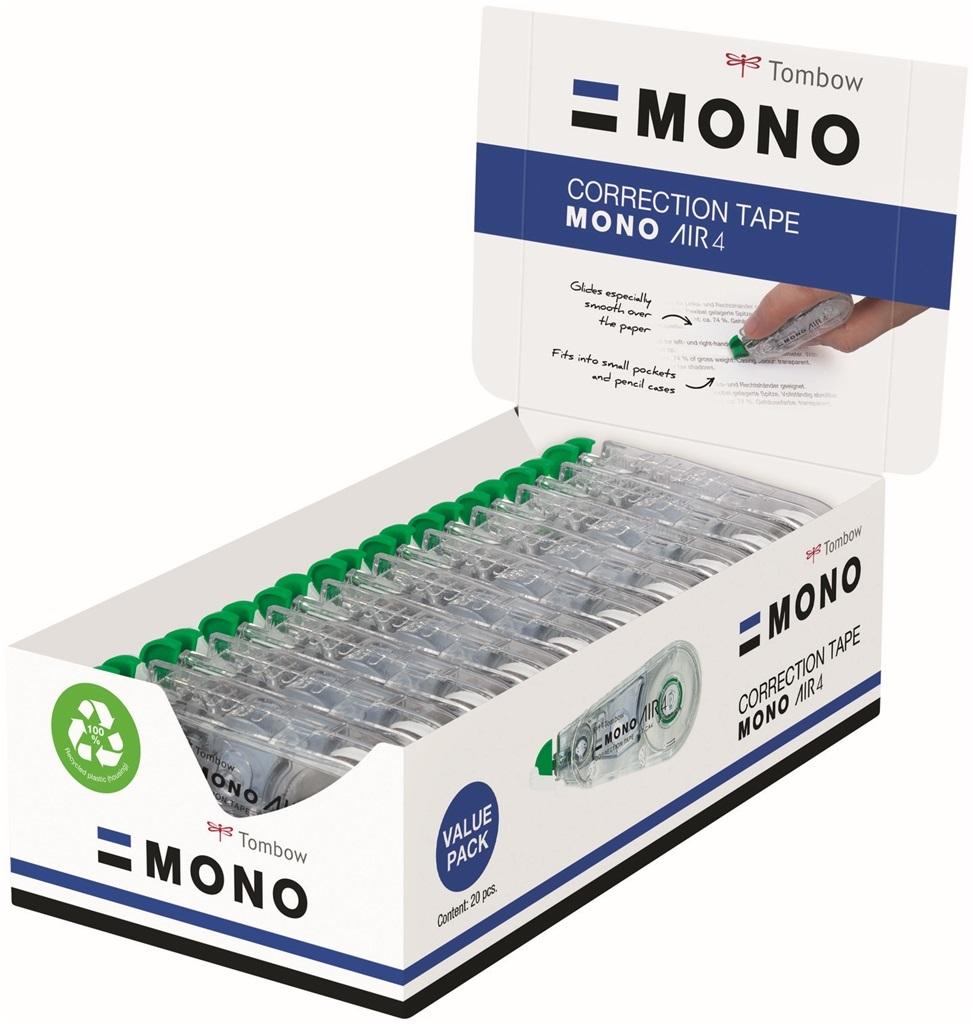 Boczna taśma korekcyjna Tombow MONO, którą można trzymać jak długopis. Ergonomiczny kształt i miękki wygodny uchwyt. Brak czasu schnięcia - można pisać od razu po aplikacji. Dzięki technologii Tombow Coating Technology możliwe jest jeszcze łatwiejsze pisanie po taśmie. Czysta i łatwa aplikacja nawet na nierównych powierzchniach dzięki elastycznie zamontowanej końcówce. Taśma jest mocno kryjąca i odporna na rozdarcie (PET) - można ją dozować do ostatniego milimetra.