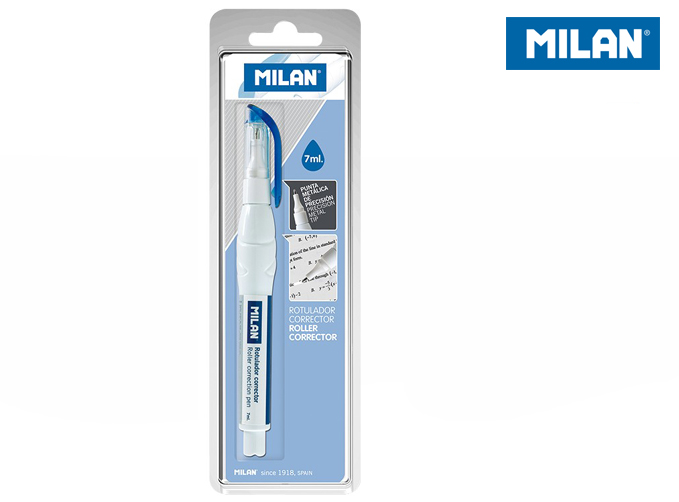 Korektor w piórze 7 ml z metalową końcówką. Ergonomiczny kształt. Poprzez naciśnięcie obudowy zwiększamy przepływ płynu.