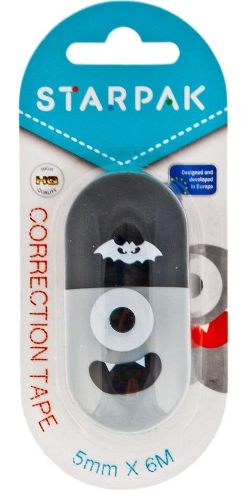 Wysokiej jakości korektor w taśmie o długości 6 m i szerokości 5 mm. Niezbędny element wyposażenia piórnika każdego pilnego ucznia. Z wizerunkiem zabawnego potworka, który umili czas spędzony w szkolnej ławce.