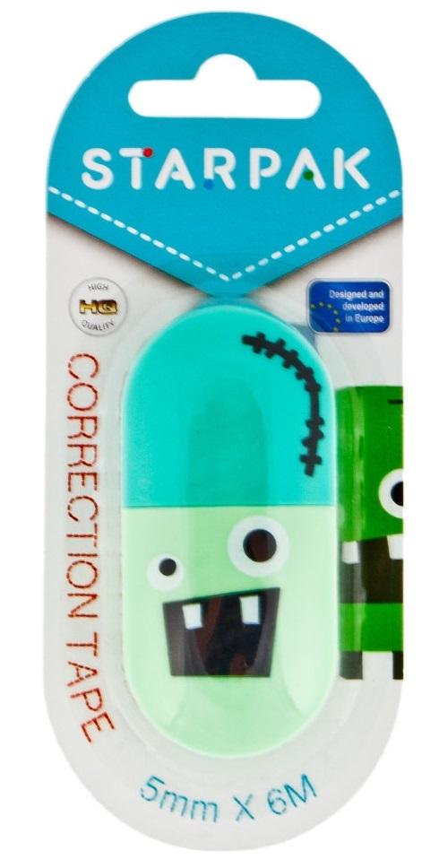 Wysokiej jakości korektor w taśmie o długości 6 m i szerokości 5 mm. Niezbędny element wyposażenia piórnika każdego pilnego ucznia. Z wizerunkiem zabawnego potworka, który umili czas spędzony w szkolnej ławce.