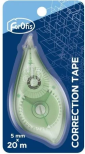 Korektor w taśmie, szerokość 5 mm, długość 20 metrów. Ergonomiczny kształt obudowy dopasowany do dłoni. Wysokiej jakości taśma korekcyjna odporna na zerwanie z idealnie przylegającą do powierzchni papieru warstwą korygującą, po której można pisać bezpośrednio po zastosowaniu. Do użytku na większości rodzajów papieru. Przezroczysta obudowa pozwala śledzić pozostałą ilość taśmy korygującej. Estetycznie zapakowany w twardy blister. Obrotowa końcówka pozwala używać go w dwóch płaszczyznach.