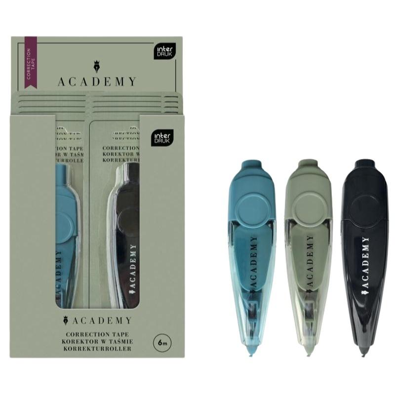 Korektor Academy to nieodzowny element każdego piórnika. Dzięki poręcznej obudowie i starannie zaprojektowanej konstrukcji, idealnie leży w dłoni i pozwala na swobodne manewrowanie. Taśma aplikuje się gładko, nie zrywa się i nie tworzy nierówności, co czyni ją wyjątkowo wygodną w codziennym użytkowaniu. Korektor nie tylko spełnia swoją funkcję, ale również cieszy oko i świetnie uzupełnia inne elementy kolekcji Academy w tym długopisy, karteczki indeksujące, teczki i zeszyty.