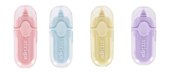 Ergonomiczny mini korektor w taśmie. Wyjątkowo odporna taśma nie rozrywa się ani nie pęka.Korektor szybko schnie oraz nadaje do wszystkich rodzajów papieru. Szerokość taśmy: 5mm, długość taśmy 6m. Dostępny w czterech kolorach obudowy: różowy, niebieski, żółty, fioletowy.