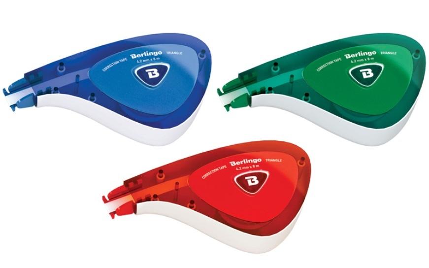 Korektor ''Triangle'' myszka, długość taśmy 8 m, szerokość 4,2 mm. Taśma korektuje tekst między liniami na papierze w kratkę. Trójkątny korpus w jasnych kolorach. Nadaje się do zakrywania tekstu pisanego na maszynie i odręcznego oraz na wydrukach z drukarek. Szczelnie i precyzyjne powleka, nie wymaga czasu schnięcia. Możliwość natychmiastowego pisania po korygowanej powierzchni. Nie pozostawia śladów i cieni na kserokopiach. Opakowanie - blister z zawieszeniem euro.