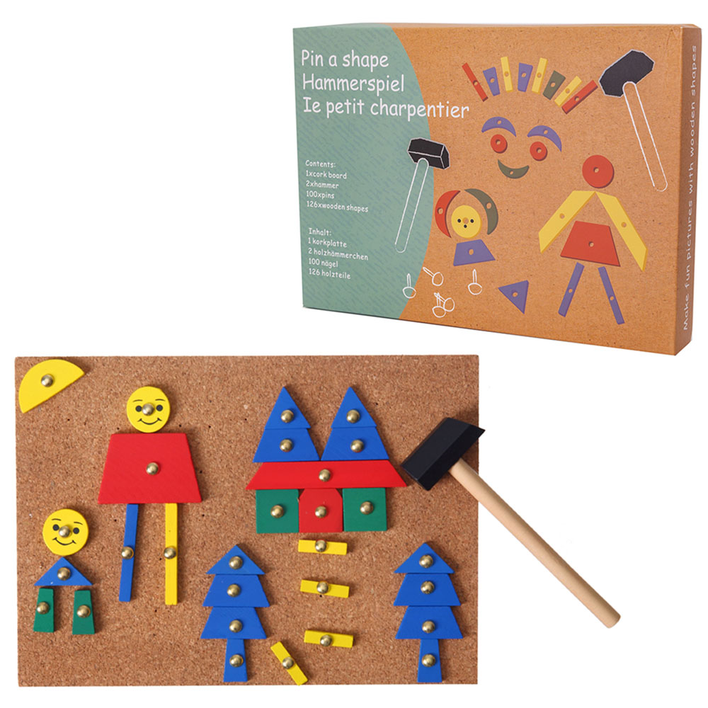 Korkowa przybijanka z drewnianaymi kształtami i pinezkami