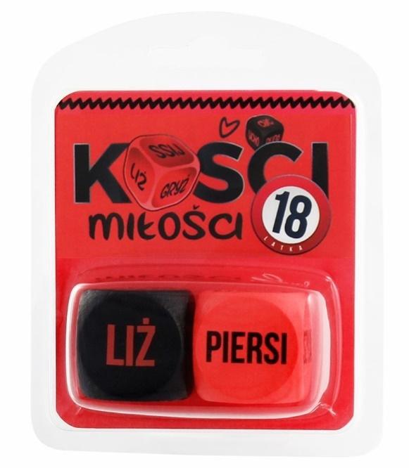Erotyczna gra w kości dla par. Na jednej kostce znajdują się części ciała, a na drugiej zmysłowe czynności, które mamy wykonywać.