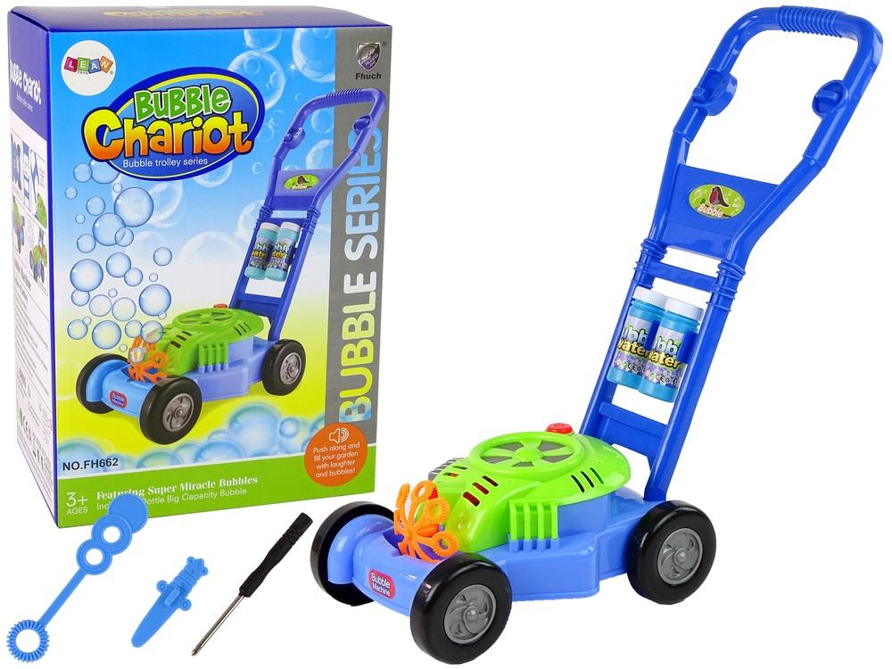 Kosiarka Maszyna do Baniek Mydlanych Niebieska Bańki Mydlane Muzyka Ogrodowe zabawki zachęcą malucha do spędzania czasu na świeżym powietrzu. Budują wiele wspomnień. Kosiarka może być wykorzystywana na przyjęciach, w trakcie zabawy, rodzinnych pikników. Wielka frajda dla każdego! Puszczanie baniek od zawsze budzi radość, to ponadczasowa zabawa, z której nigdy się nie wyrasta. Generator baniek w formie kosiarki stworzy dziesiątki tęczowych baniek oraz jednocześnie maluch zadba o swój trawnik. Kosiarka zasilana jest za pomocą baterii oraz wyposażona w długą, wygodną rączkę, która pozwala na samodzielne prowadzenie kosiarki dla malucha. Sprawdzi się jako pchacz, by pomóc utrzymać równowagę. Ten generator kosiarka posiada aż 8 oczek, przez które non stop z imponującą szybkością wylatują małe banieczki. W pierwszej kolejności po włączeniu usłyszymy dźwięk koszenia, następnie zabawie towarzyszyć będzie wesoła muzyka. Dwa płyny do baniek zapewnią zapas na dłuższy czas. Kosiarka wykonana została ze sztucznego tworzywa, dlatego jest lekka, co pozwala na łatwe popychanie przez malucha. Elementy zestawu: - kosiarka - płyn do baniek mydlanych x 2 Wymiary kosiarki: 34 cm x 20 cm x 46 cm Wysokość rączki: 46 cm Wymiary pudełka: 20 cm x 29 cm x 14 cm Kosiarka zasilana jest trzema bateriami AA 1.5V (brak w zestawie). Zabawka przeznaczona jest dla dzieci powyżej 3. roku życia. Zestaw posiada certyfikat CE i jest zgodny z normą EN 71. Zestaw zapakowany jest w kartonowe pudełko, dzięki czemu nadaje się idealnie na prezent.